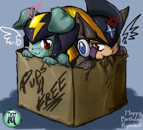 What can be absolutely more adorable than a pair of two irresistable puppies. ;_; I love how Forte chewed up his half of the box. XD This was a wonderful pressie from Mana-chan! *huggles* Thanke for making my birthday special. :D