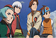 The Dream Bits fire their lasers in the direction of the boys, but as the smoke clears all three Cross Fusion members jump clear of the destruction. Slinging off a Rock Buster, a Sonic Boom, and a Scope Gun, they make quick work of the mechas in their path.