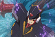 An eerie purple glow is cast upon Forte's dead set eyes and the star jewel upon his helmet. Yuuichirou and Meijin don't understand how Forte could be before them, when Slur had thrown him down into the depths of UnderNet. Rockman struggles to his feet, clutching a wounded arm, and murmers Forte's name. The blood thirsty navi leaps forward, thrusting out his "Dark Arm Blade!" with both arms as he goes in directly for the kill.
