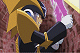 Dingo has other ideas in mind however, as he grabs onto Dekao's rather large arm to drag him off to the food eating matches. Dekao screams out Meiru's name as he's hauled off without a choice. Meiru, Netto, Chisao and Tohru simply wish them well, and remind Dekao and Dingo to meet up with them again later.