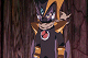 Netto and his remaining friends venture off towards the battles on the ground floor, and end up wandering through a strange area full of costumed people. Netto whispers to Tohru that it looks as if they've been surrounded by space aliens, but Tohru just responds that this certain area is holding a convention for a popular sci-fi show. Coincidently they run into their teacher, Mariko-sensei, who is also dressed very strangely. The kids call out to her, but she corrects them with her new fan-made name, "Hyo Khan".