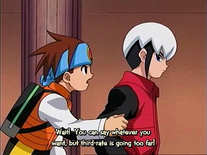 Just had to have a classic shot of Netto and Enzan together, and obviously not in the best of moods. I think this shot describes them perfectly. ^_^ This comes in right after Enzan insulted Yaito's company yet again.