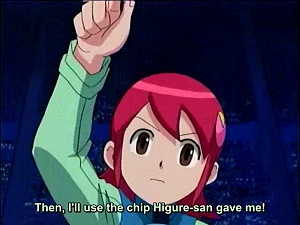 That very rememberable moment when Meiru slots in the Devil Chip, which ultimately transforms Roll-chan and turns her evil. A very nice pan shot of the entire frame!