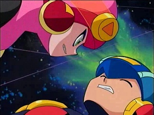 I wish I had the frames that come in a few seconds later, when Roll-chan gets even more cruel and pokes Rockman in the face with her spikey whip. *POKEPOKE* ARE YOU DEAD YET?!